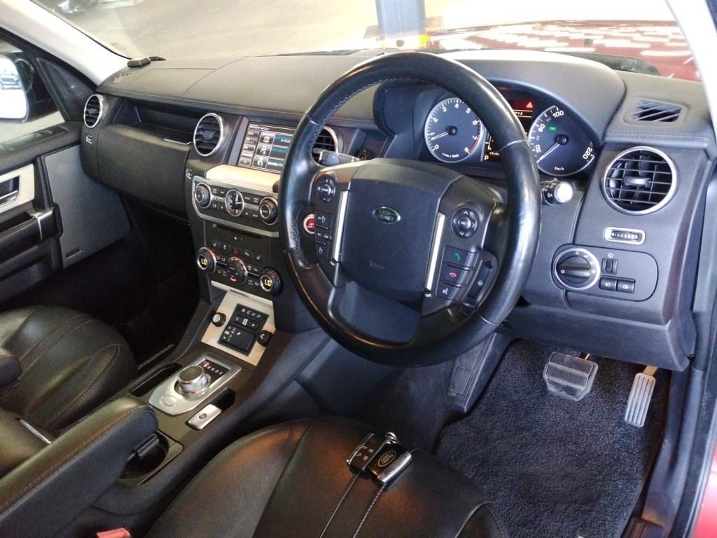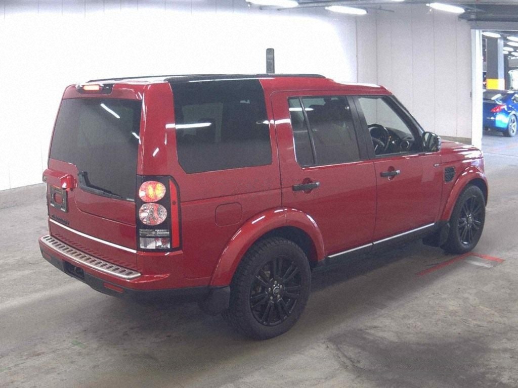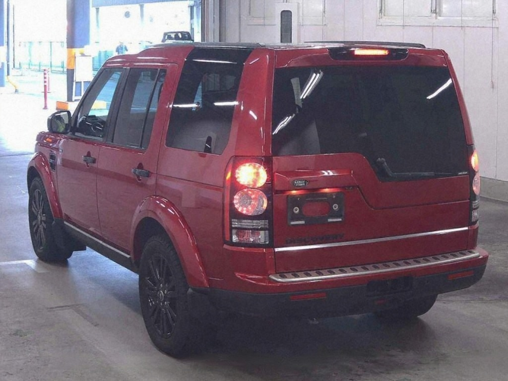 This 2014 Land Rover Discovery 4 is a right-hand-drive, Japanese-market SUV finished in Firenze Red over an Ebony Black leather interior. Power is provided by a 3.0-liter supercharged V6 gasoline engine, which sends 340 horsepower to all four wheels through an 8-speed ZF automatic transmission and Land Rover's advanced four-wheel-drive system with four-corner air suspension.