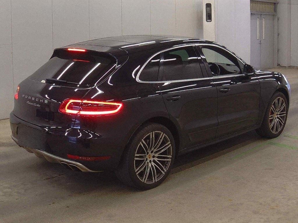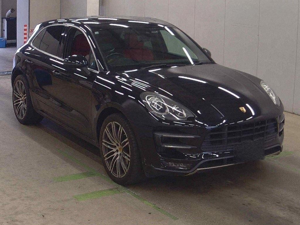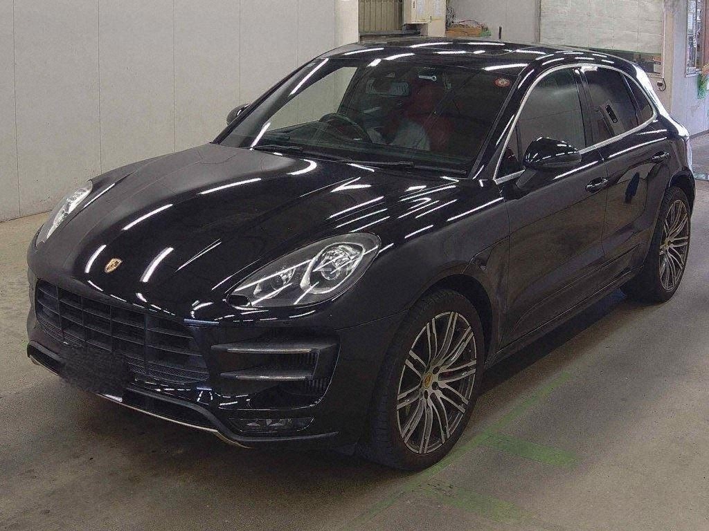 This 2014 Porsche Macan Turbo is a right-hand-drive, Japanese-market performance SUV finished in Black over a vibrant Red leather interior. As the top-of-the-range model, it is powered by a potent 3.6-liter twin-turbocharged V6, sending 400 horsepower to all four wheels through a 7-speed PDK dual-clutch automatic transmission and Porsche's advanced all-wheel-drive system.