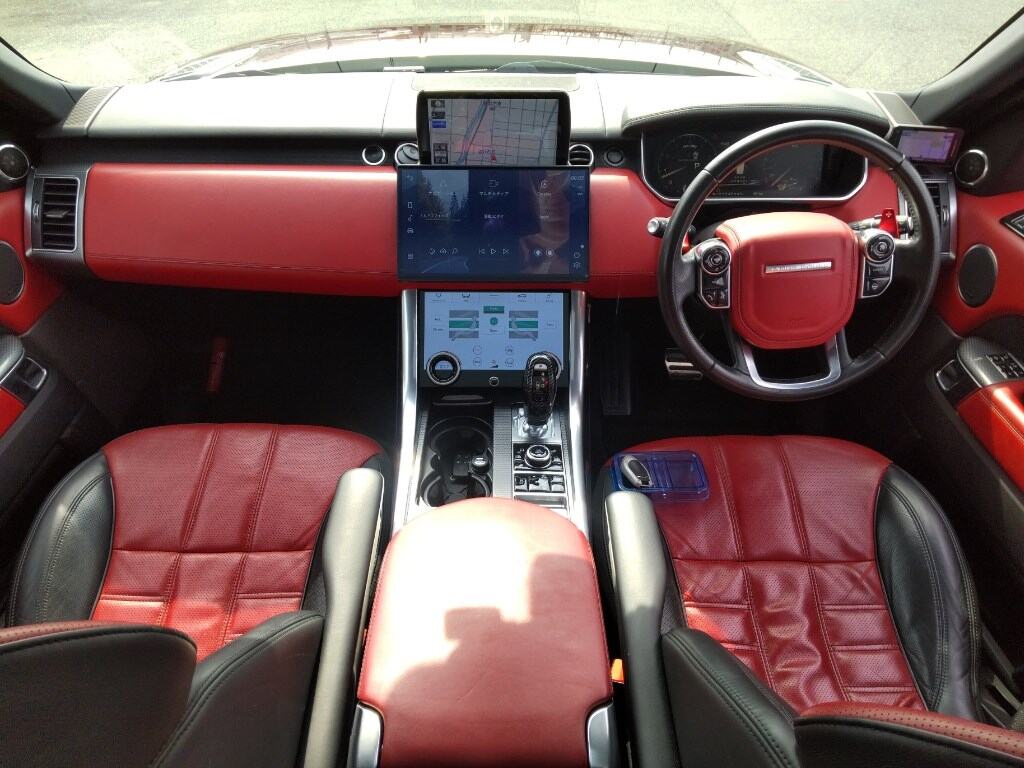 This 2015 Land Rover Range Rover Sport Autobiography is a Japanese-market SUV finished in Montalcino Red. Power is provided by a 5.0-liter supercharged V8 engine, which sends 510 horsepower to all four wheels through an 8-speed ZF automatic transmission and Land Rover's advanced four-wheel-drive system with adaptive air suspension.